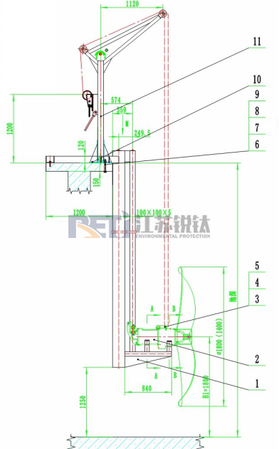 1、土建结构为钢混或钢制桥架,确保能够承受设备负荷。2、水上安装平台最窄空间为300,大于此尺寸都可以安装。3、水下部分安装高度离池底约1200,这是推流器的合理安装高度。4、导杆长度按工艺图或实际池深决定,最长可达到12米。5、可采用水上碳钢,水下不锈钢材质。