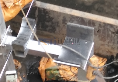 悬挂装置分为水下支撑管和水上固定座。水上固定座安装在走道板或钢制桥梁上,主要承载整个悬挂推流器的重量和推动器运行时的推力产生的弯矩。水下支撑管采用方管或圆形管,承受推流器的重量及推力产生的弯矩。整体结构稳定可靠。