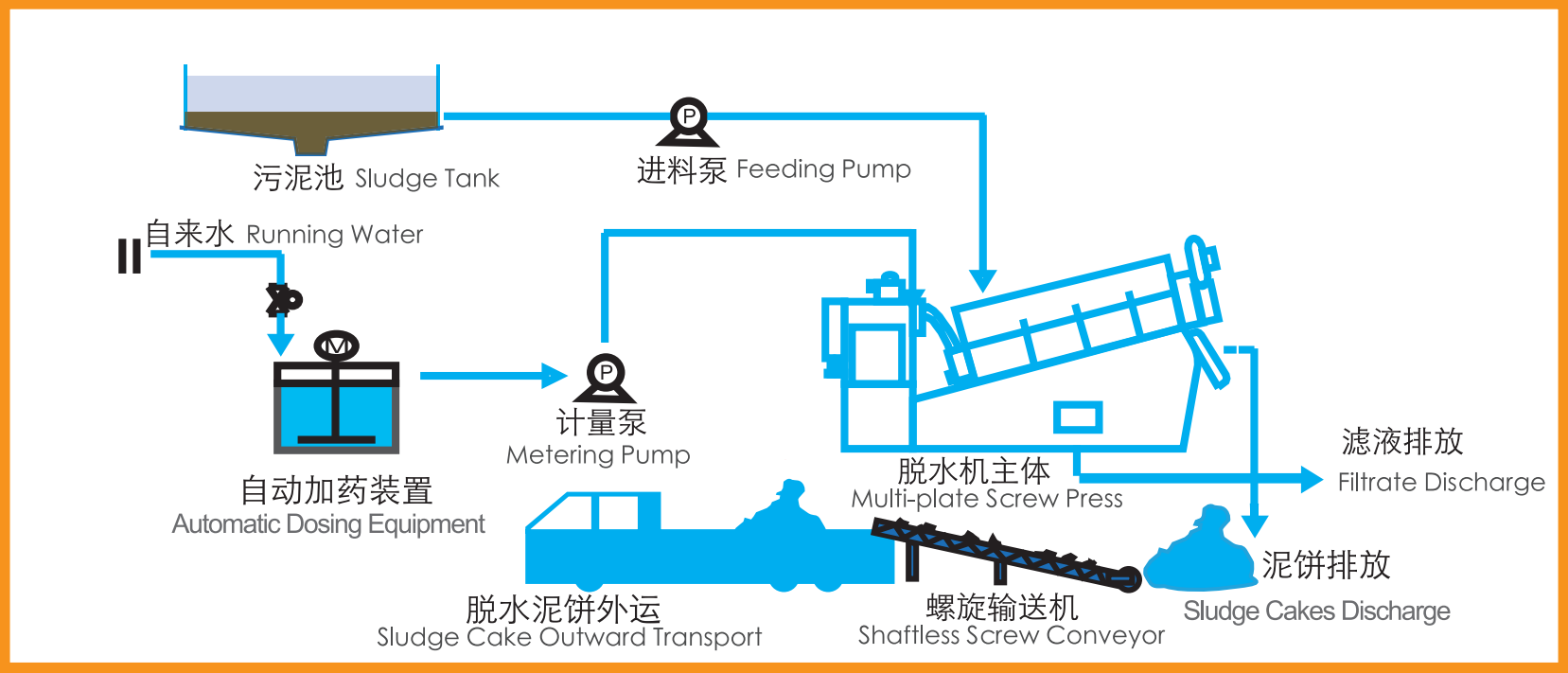 ◆ 脱水机的基本工作流程