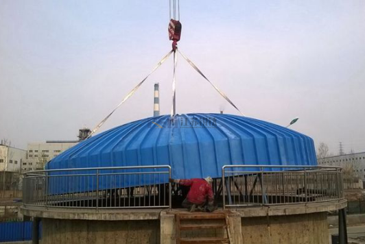 用于密封污水池和氧化沟,防止气味散发污染环境。 将排气口设置在盖板上,并将臭气从管道吸入除臭设备